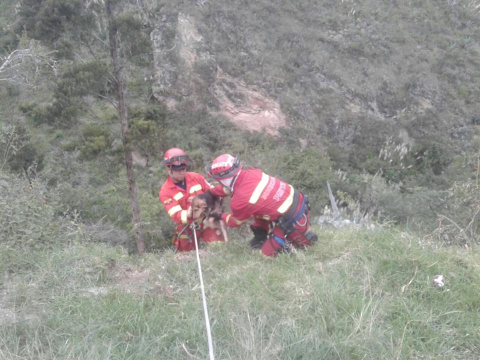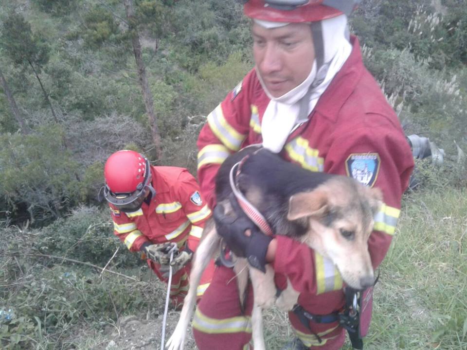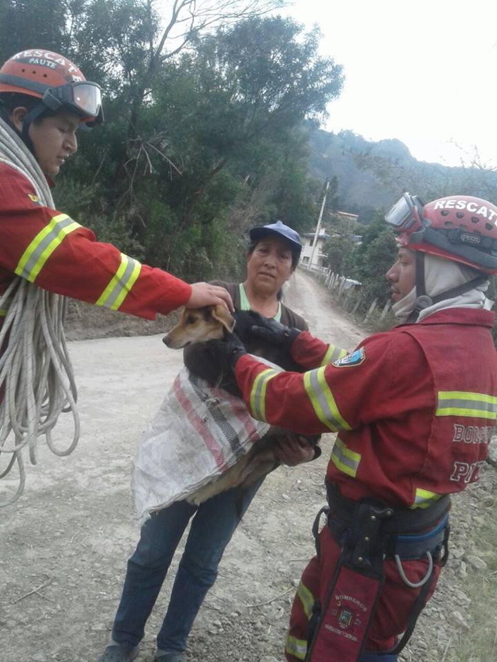 Martes 13 de Marzo. Rescate Canino en el sector de huacas siendo las 17:30 pm se recibe una llamada de los moradores indicando que un cachorro cayo a un barranco a una distancia de 50 metros, se procedio al lugar con cuerdas y tres bomberos realizando descenso para poder rescatar al cachorro que inmediatamente fue adoptado por la señora del sector..nuestras victimas no son solo personas amamos la vida y la salvamos.